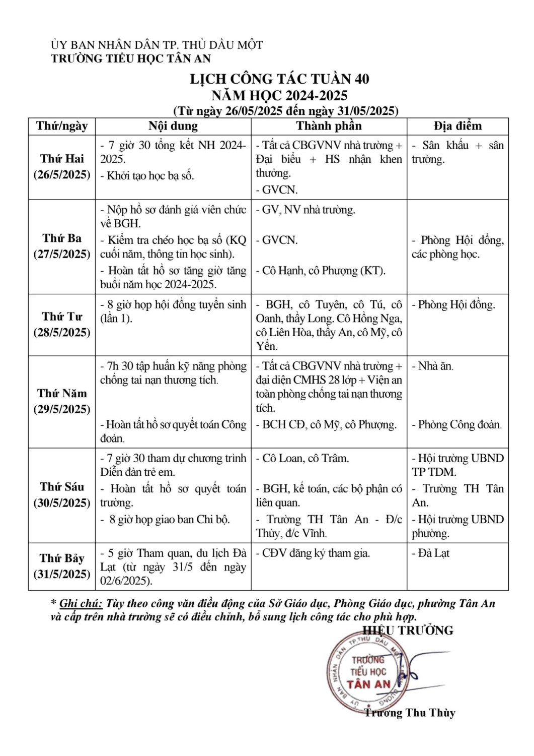 Lich làm việc trường TH Tân An