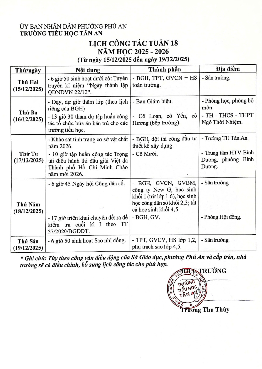 Lich làm việc trường TH Tân An